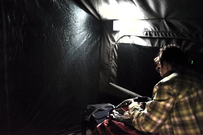 den einzelnen Zelten gebracht, während wir mit Taschenlampe und Führer